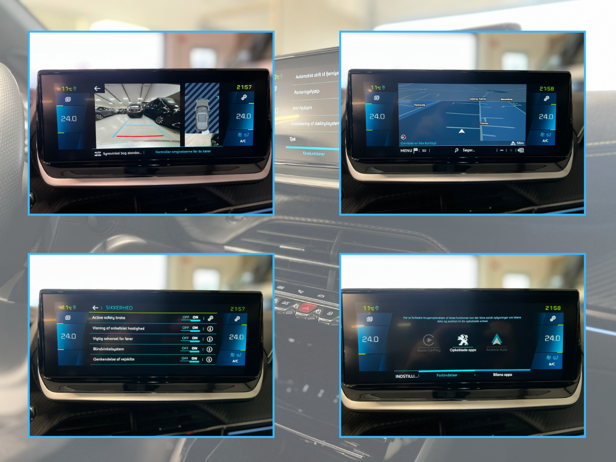 , kørecomputer, digitalt cockpit, multifunktionsrat, stofindtræk, mørk loftbeklædning, splitbagsæde, højdejust. førersæde, højdejust. forsæder, fuld led forlygter, el-klapbare sidespejle, el-sidespejle, kurvelys, led baglygter, led kørelys, mørktonede ruder i bag, tagræling, automatgear, aircondition, fuldaut. klima, 2 zone klima, elektrisk kabinevarmer, motorkabinevarmer, fjernb. centrallås, centrallås, nøglefri tænding, fartpilot, nøglefri adgang, udv. temp. måler, 4x el-ruder, el-ruder, sædevarme, elektrisk parkeringsbremse, app integration, type-2 ladekabel, navigation, dab radio, håndfrit til mobil, musikstreaming via bluetooth, android auto, apple carplay, alarm, regnsensor, bakkamera, parkeringssensor (for), parkeringssensor (bag), dæktryksmåler, skiltegenkendelse, isofix, db. airbags, automatisk lys, airbag, 4 airbags, antispin, esp, blindvinkelsassistent, tågelygter, læderrat, adaptiv fartpilot, dab+ radio
